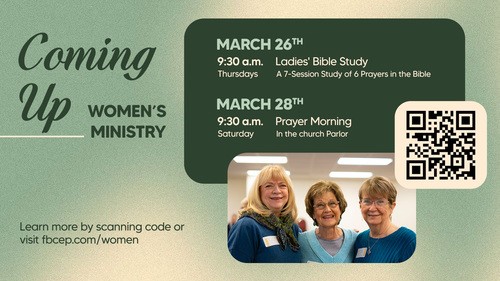 Join us at 10:15 a.m. in Price Hall to learn more about FBC El Paso and how you can take the ‘next steps’ with us!