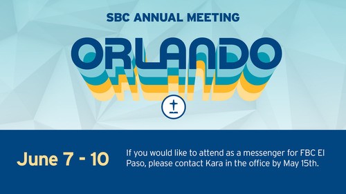 Note: Kids’ Ministry Care will be provided for children from birth through second grade. To help us plan, please register your child.