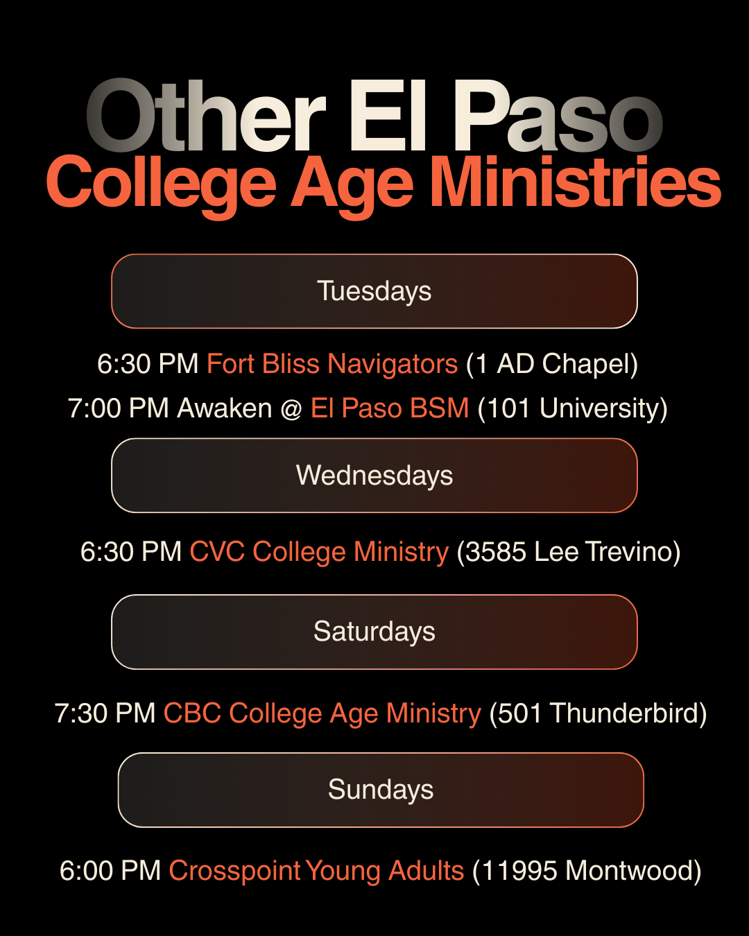 FBC’s College Ministry seeks to connect college students and young adults (ages 18-25) to the love and the life of Jesus so that they can become world-changers for the glory of God. We help students learn the Truth of the Bible, connect with God and others in meaningful ways, and be involved in opportunities to impact the world around them for Christ.